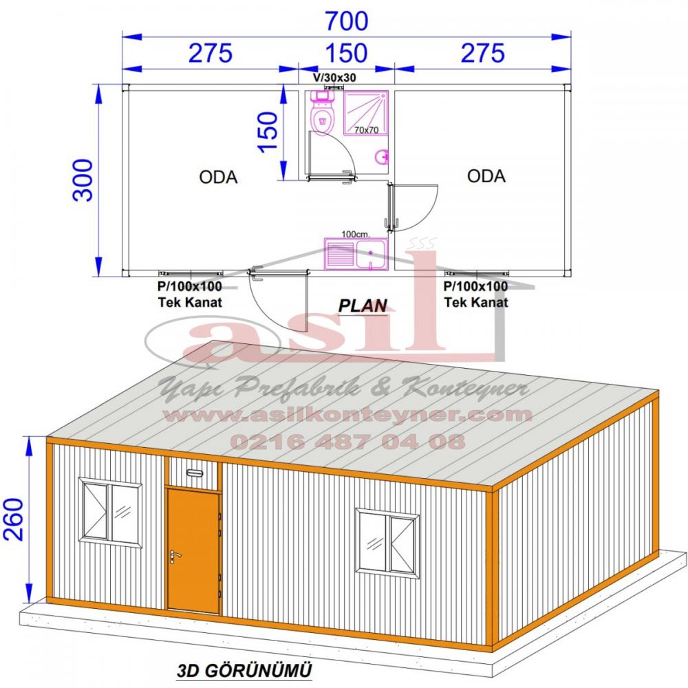 300X700 SANDWICH PANEL TEK ODA KONTEYNER80000,00 TL + Kdv -