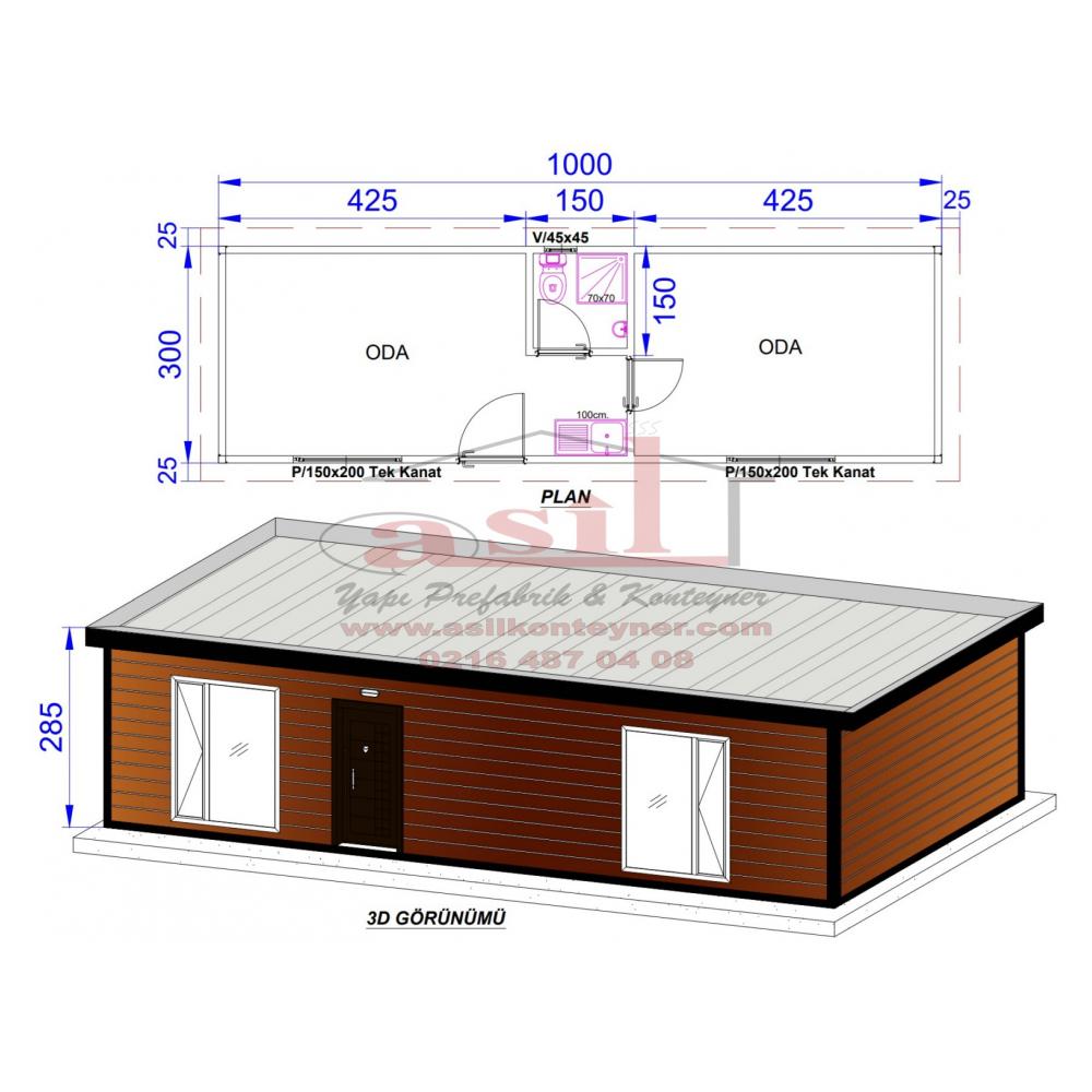300x1000 (30 m²) İKİ ODA, WC, DUŞ, MUTFAKLI HAZIR EV.