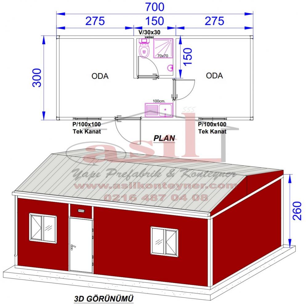 21 m² TEK ODA, DIŞ DUVAR BETOPAN KAPLAMALI ÇELİK KAPILI HAZIR EV180000,00 TL + Kdv