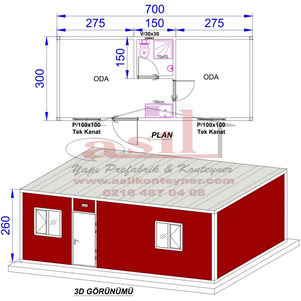 21 m² TEK ODA, DIŞ DUVAR BETOPAN KAPLAMALI ÇELİK KAPILI HAZIR EV180000,00 TL + Kdv -