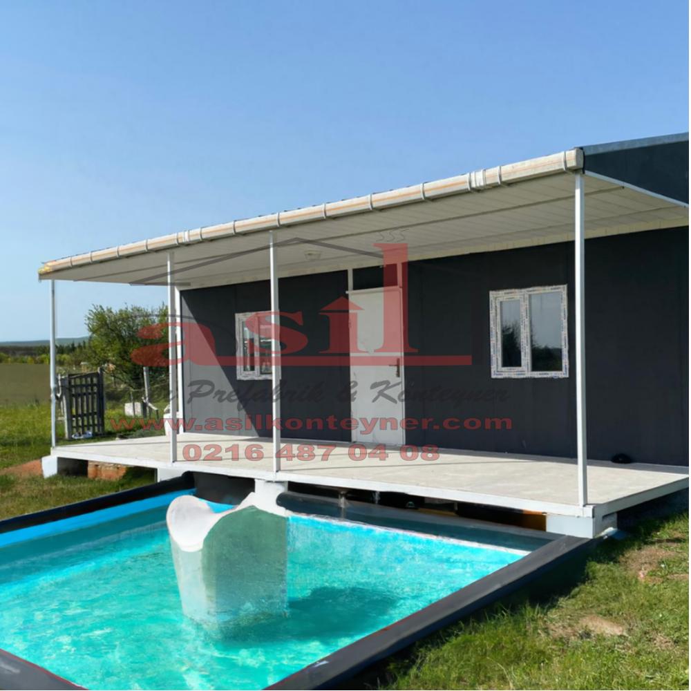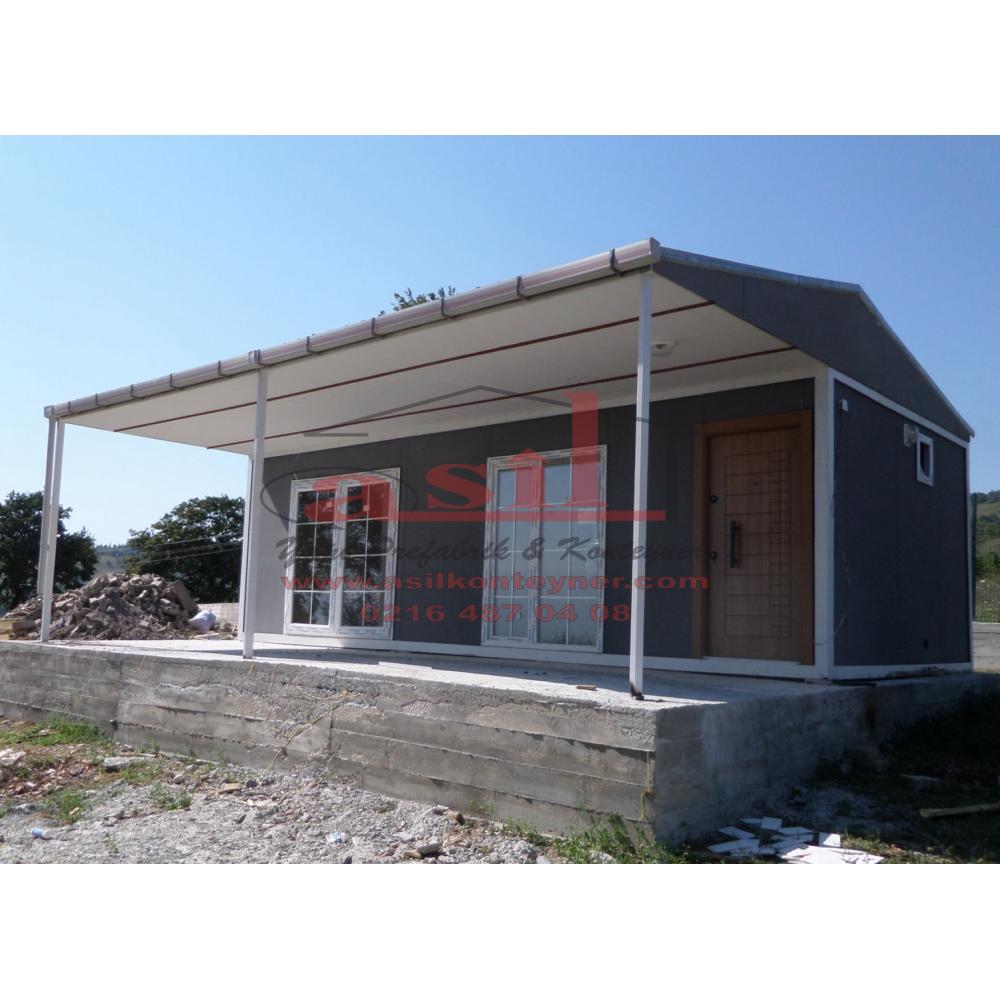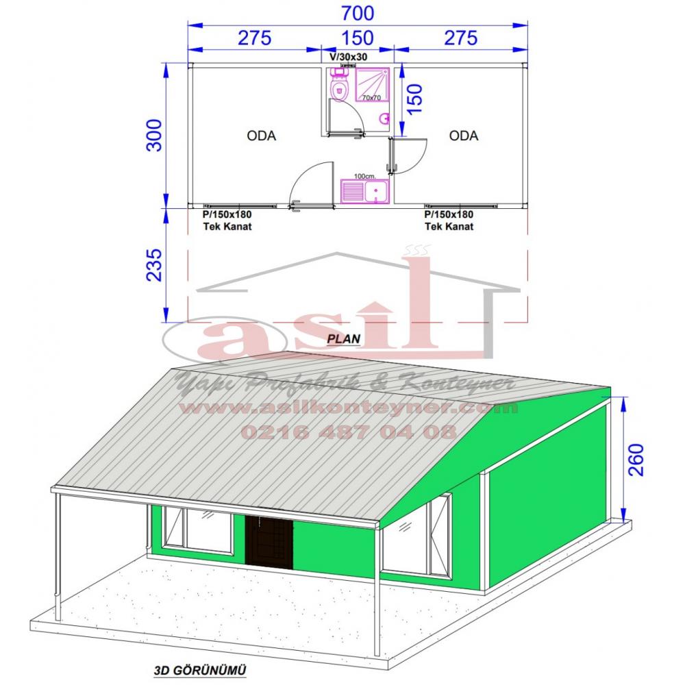 300x700 (21 m²) İKİ ODA, WC, DUŞ, MUTFAKLI, V ÇATI + 235 cm. VERANDALI HAZIR EV.