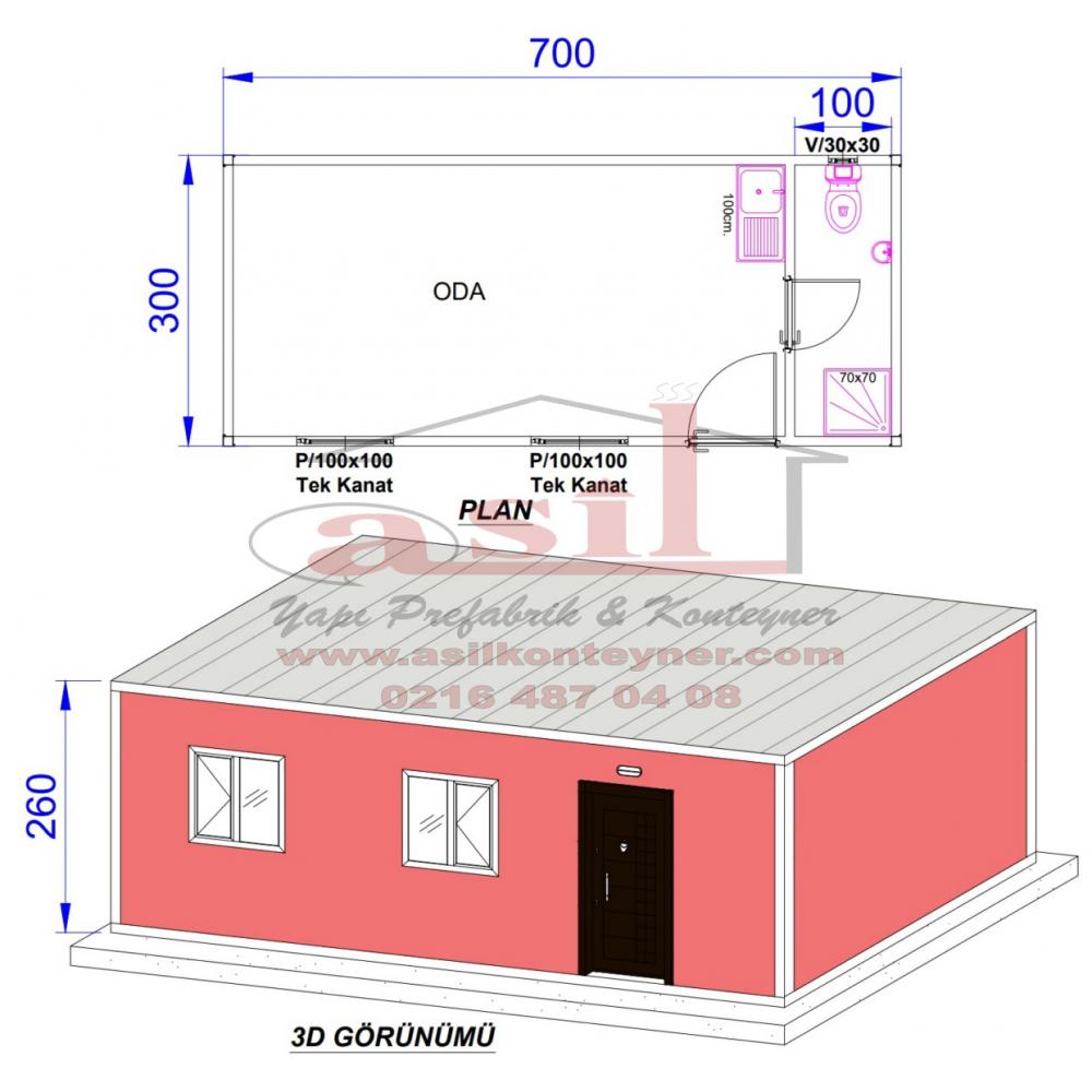 300x700 (21 m²) TEK ODA, WC, DUŞ, MUTFAKLI HAZIR EV.