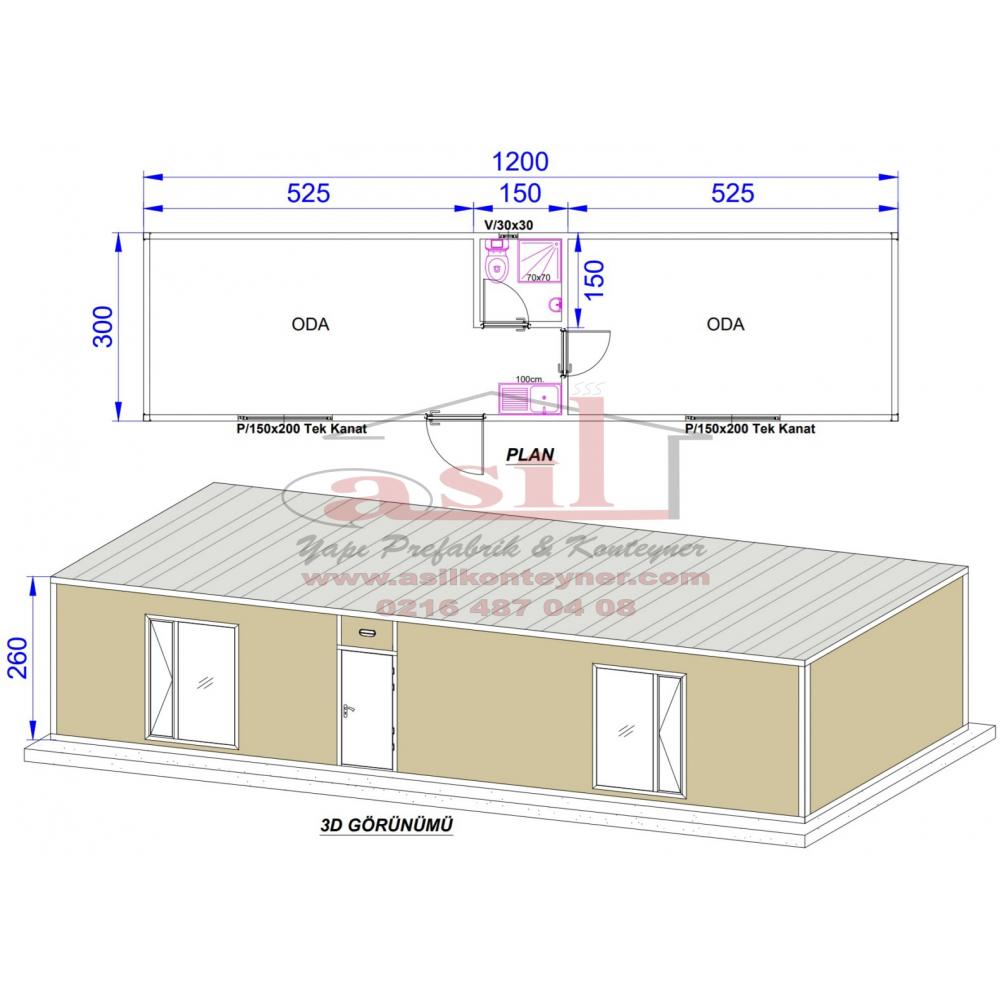 21 m² TEK ODA, DIŞ DUVAR BETOPAN KAPLAMALI ÇELİK KAPILI HAZIR EV180000,00 TL + Kdv -