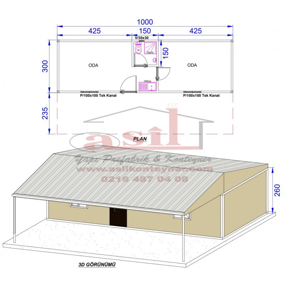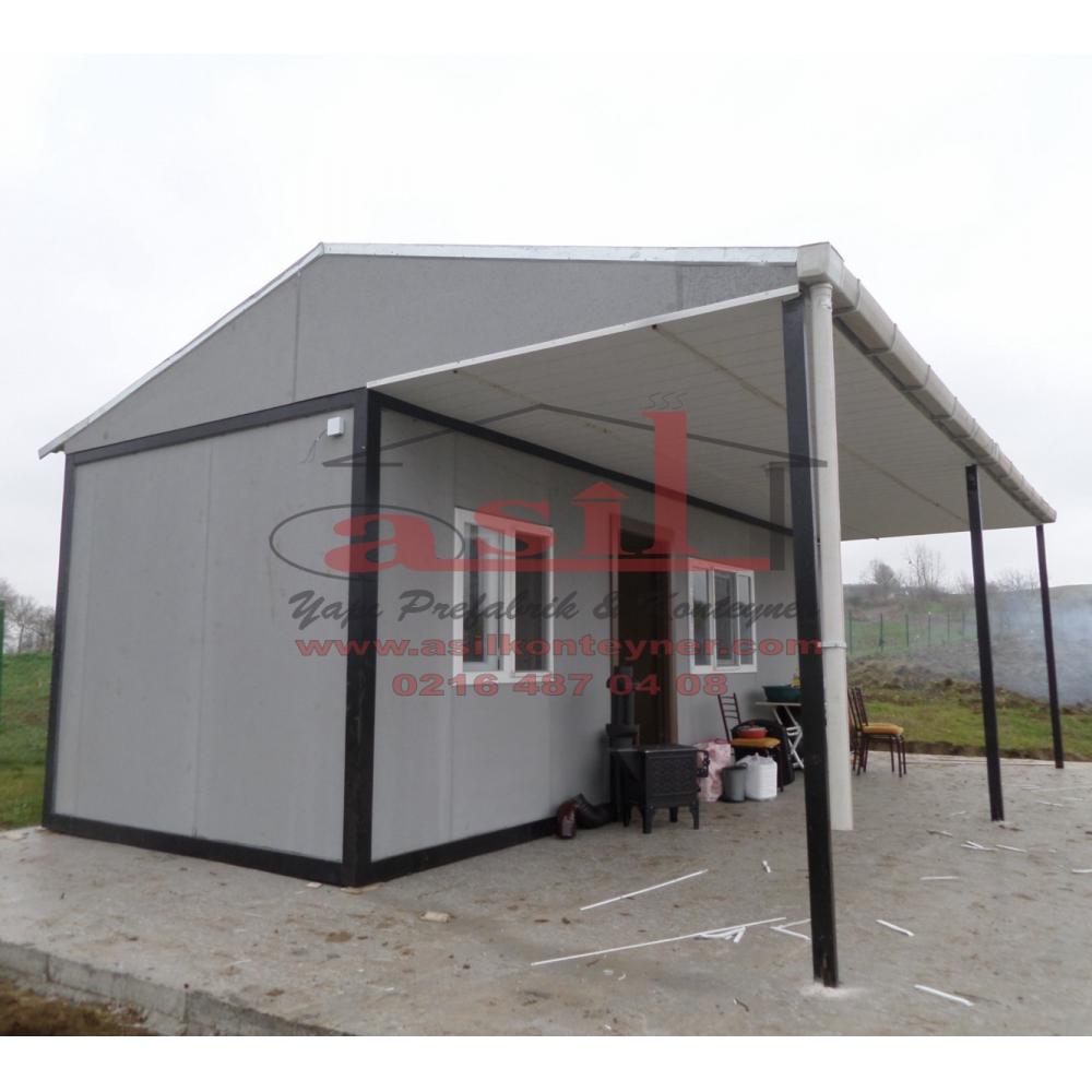 300x1000 (30 m²) İKİ ODA, WC, DUŞ, MUTFAKLI, V ÇATI + 235 cm. VERANDALI HAZIR EV.